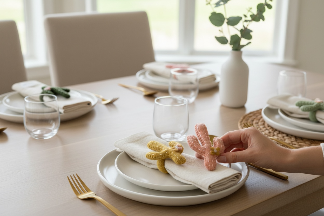 - Set of 4 handmade cactus napkin rings