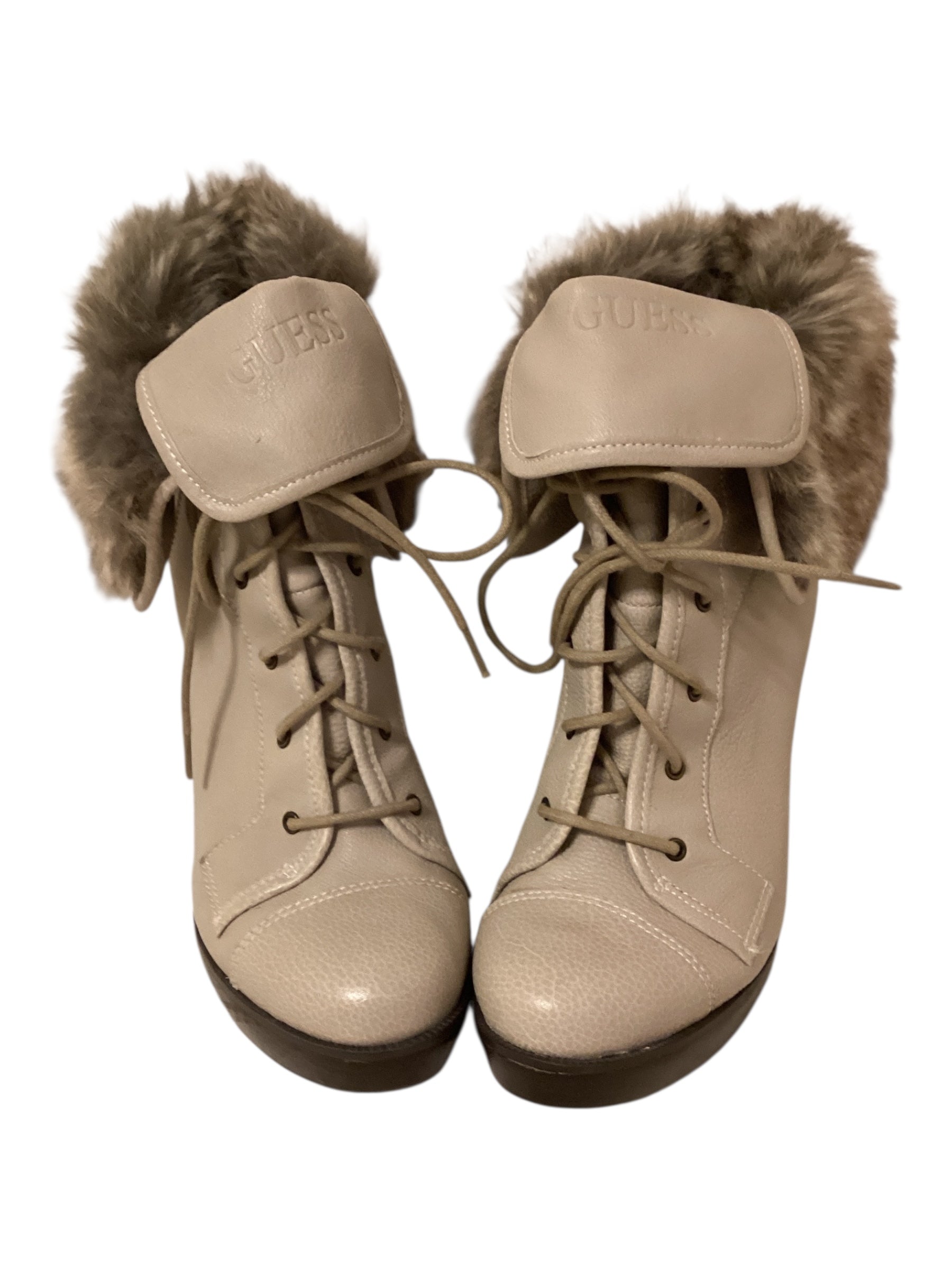 Step out in style and comfort with these Guess Leather Ankle Boots in a versatile taupe color. Featuring a chic lace-up design and cozy faux fur trim, these boots combine fashion and function perfectly for the cooler seasons. Crafted from high-quality leather, they offer durability and a sophisticated look that complements any outfit.