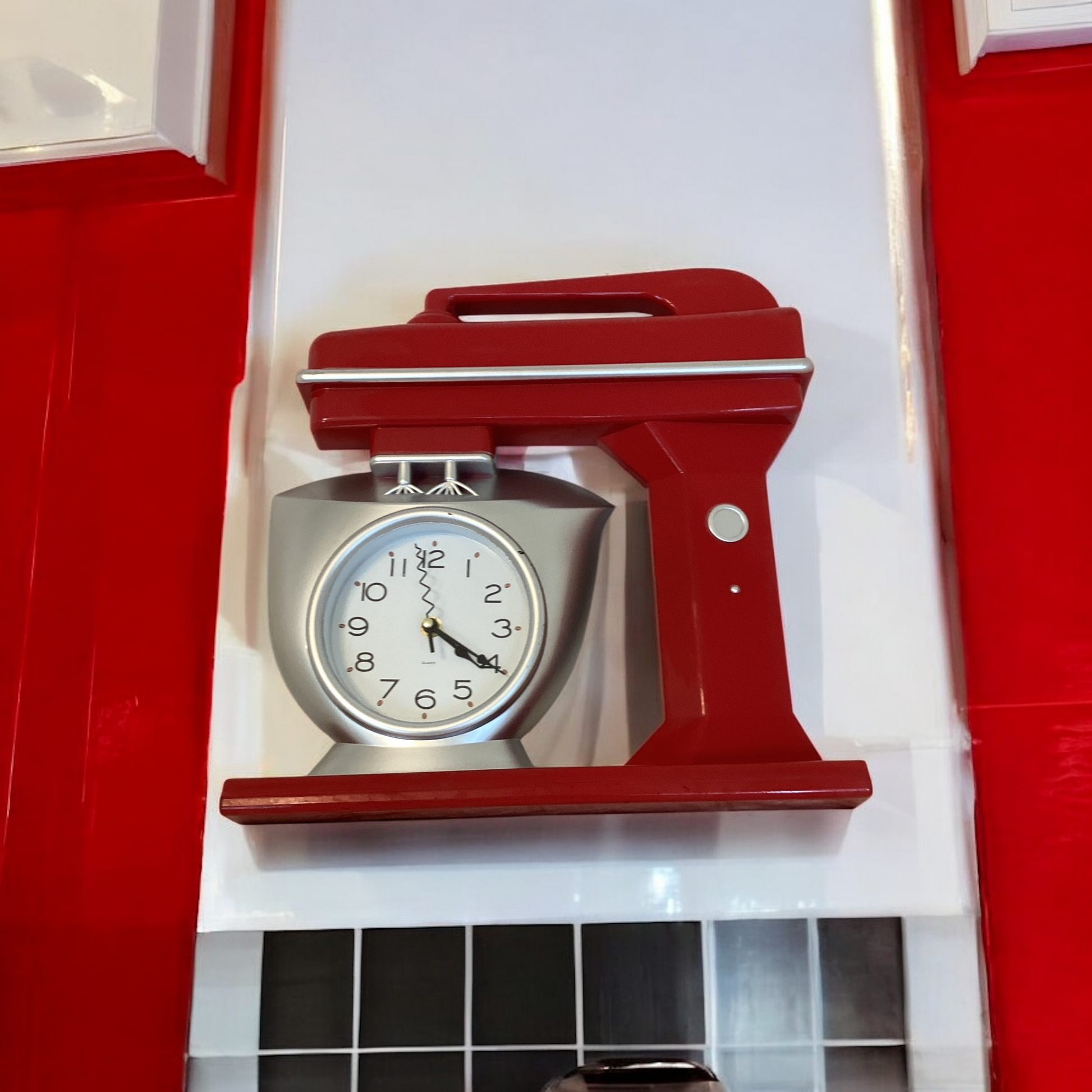 - Bold red vintage-style kitchen wall clock