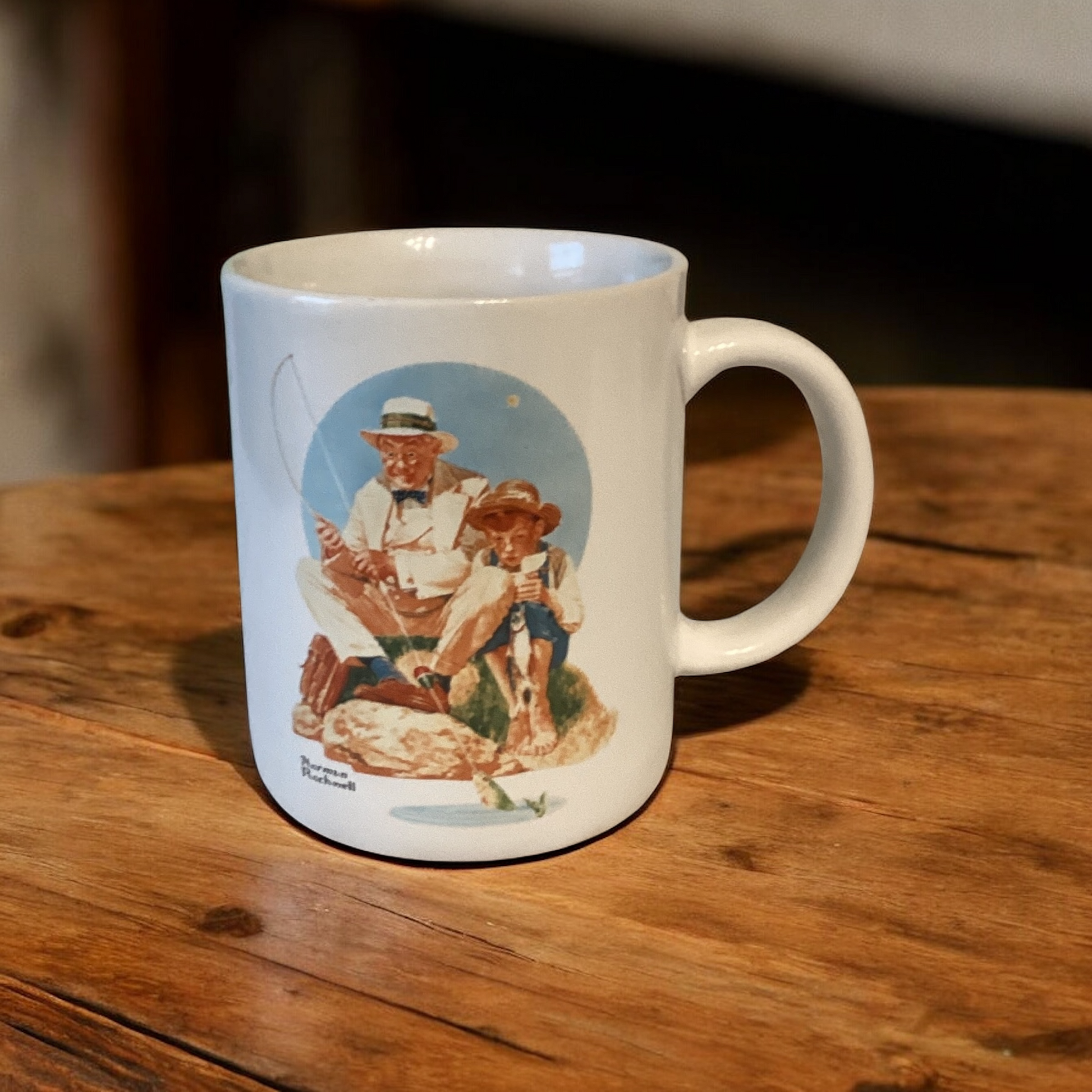- Vintage Norman Rockwell mug – “Catching the Big One” design