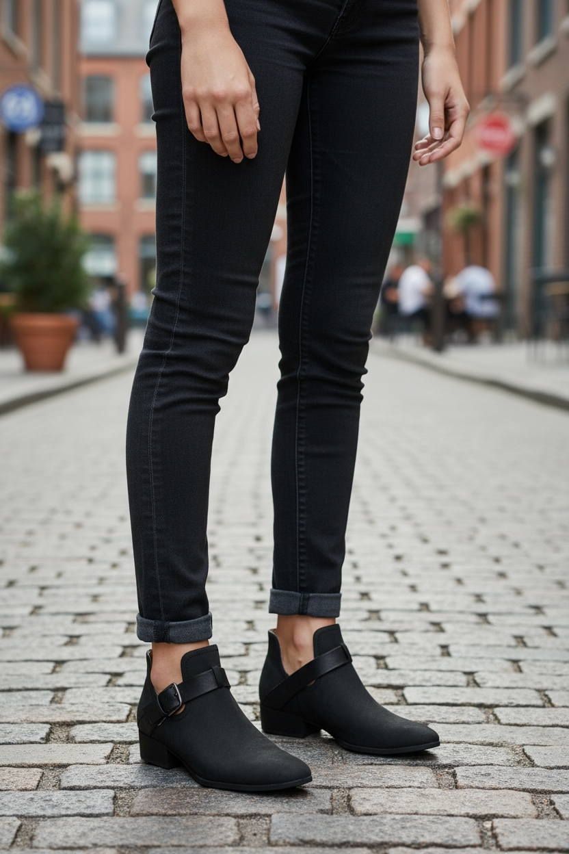 - Style: Mave Pull-On Buckled Ankle Boots